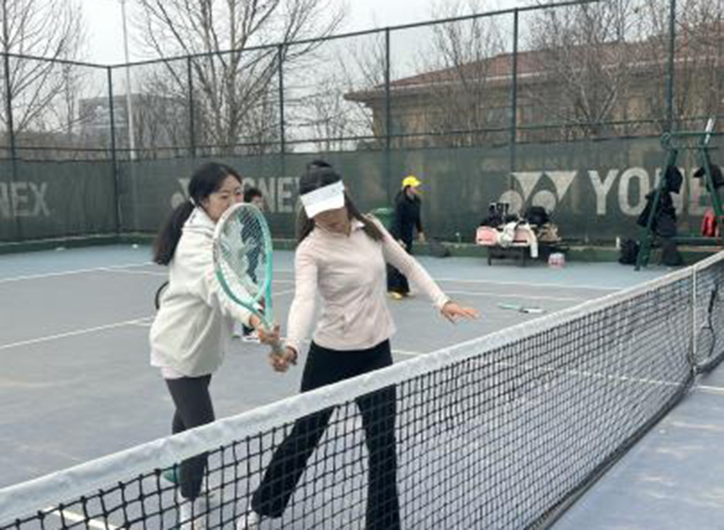 采用“1+2”指导模式,每位主教练搭配两名助教进行多角度动作分解。主教练正面演示正手引拍时,两侧助教同步展示侧方位动作轨迹,学员可360°观察肩部转动与重心转移的协调配合。在巩固基础后,教练组架设移动式发球机,由助教在对面场地进行多球喂送,通过变换落点与球速,模拟真实比赛中的高压情境,让同学们在体育课程中学会体育、热爱体育、终身体育!