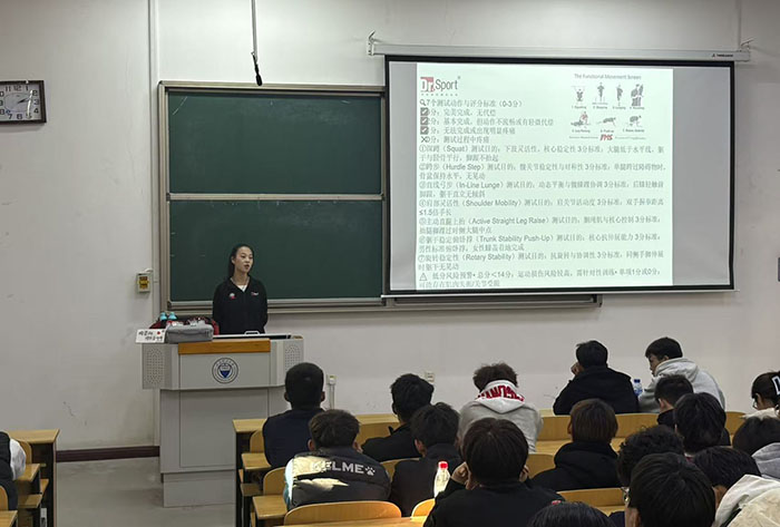 理论授课环节,任凯玲治疗师以“运动损伤防治与康复”为核心主题,系统讲解了运动损伤的发生机制、科学预防策略、现场紧急处理流程及后续康复训练方法。她特别指出,运动损伤的预防需贯穿科学训练规划、合理恢复安排、功能性筛查等多个维度,且损伤的防治与康复过程本身就是劳动技能的实践过程,要求学生以严谨细致的劳动态度对待每一个操作细节。此外,她还针对伤后康复锻炼的阶段性安排、支持带的正确使用技巧、局部与全身协同治疗方法等内容展开详细阐述,知识体系完整、逻辑清晰。