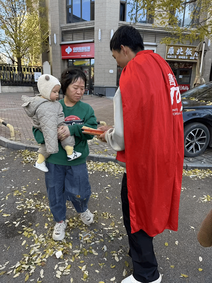 小包裹传大爱,微行动聚暖流。为向偏远地区儿童传递关怀,改善他们学习与成长条件,2025年11月9日,太原理工大学体育与健康工程学院青山志愿者服务队志愿者们在太原市小店区人流密集区域中国邮政储蓄银行举办“小包裹,大爱心”爱心包裹公益募捐活动。