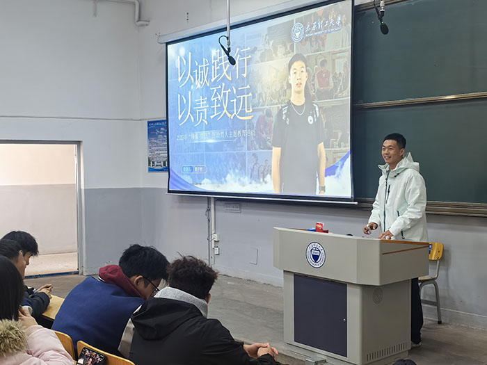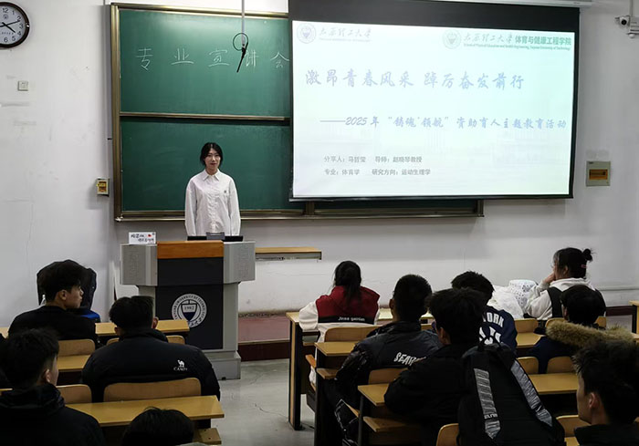 为深入落实国家资助育人政策,推进“三全育人”工作走深走实,提高学生诚信意识和感恩意识,2025年11月22日-23日,体育与健康工程学院在明向校区、虎峪校区开展2025年‘铸魂 领航’资助育人主题教育优秀学子宣讲活动,学院研究生国家奖学金获得者马哲莹、本科生国家奖学金获得者张思越、国家励志奖学金获得者周一恒宣讲个人成长经历,共计300余名学生共同聆听受国家资助政策帮扶、在学业科研与体育赛场双线出彩的优秀学子分享成长故事,感受资助温度,汲取奋进力量。