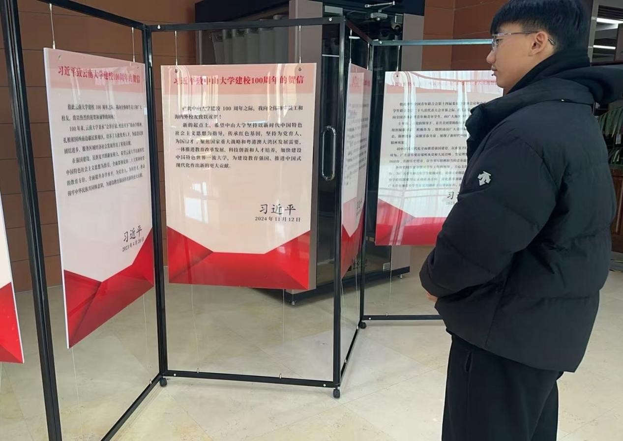 本次巡展由我校学生工作部(研究生工作部、人民武装部)联合图书馆主办,自12月17日起正式开展。展览创新设置线上展厅,构建"线上+线下"融合学习平台,为广大师生提供灵活便捷的学习渠道。巡展集中呈现近年来习近平总书记给高校师生的71封重要致信回信,每一封书信都饱含着习近平总书记对青年一代的深切关怀和殷切期望,字里行间传递着对高校立德树人、人才培养核心使命、科技创新战略要求等工作的精准指引,为新时代高校师生成长成才、担当作为指明了前进方向、提供了根本遵循。