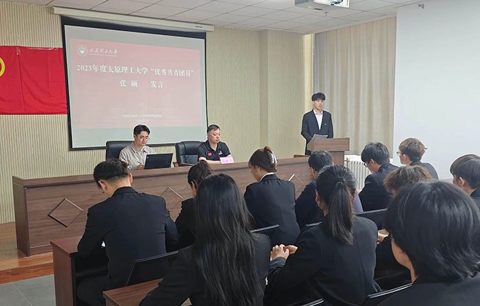 太原理工大学“优秀共青团员”获奖代表、赛马2201团支书张硕作代表发言,鼓励全体团员牢记初心使命,充分展示了体育学院广大青年自信自强、刚健有为的良好精神风貌。