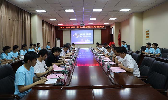 体育学院与大宁县就大学生实习实训基地、大学生就业创业基地、高校科研平台延伸基地、高校科技成果转化基地等12项合作内容进行深入交流讨论,并达成了合作意向。