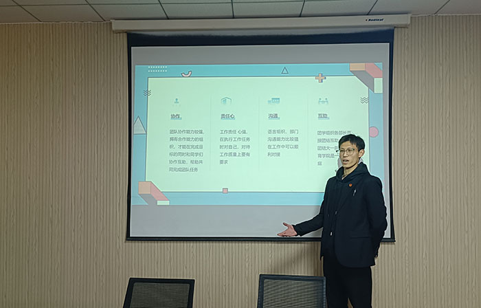 学生会主席团成员刘浩然从工作经历、参与活动、后期规划、个人总结等方面进行了细致的汇报。学生会主席团成员王相博围绕工作回顾、自我评价、目标展望等方面与大家进行交流。学生会主席团成员朱桂芹从工作概述、工作总结、不足与反思、计划与展望四个方面进行深入的总结,大家纷纷表示“我们都在学生会这个大家庭中成长着,探索着,每个部门团结互助,积极进取,希望我们在以后的建设中能积极开展工作,更好地提高我们的能力。”