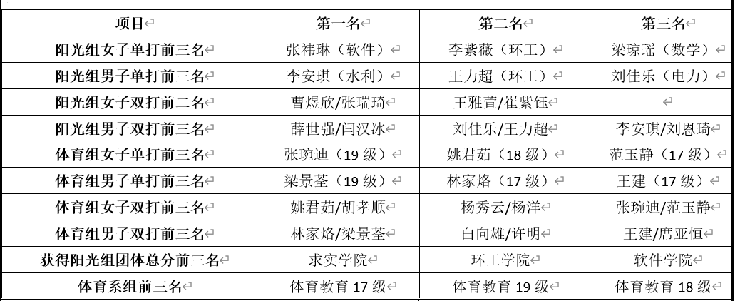 在为期两天的比赛中,运动员们充分展示了个人技能,享受着比赛的过程,通过比赛也结交了有共同爱好的朋友,积极推动了校园文化建设,为太原理工大学“双一流”建设贡献力量。最终比赛结果如下: