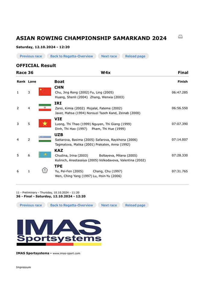 喜报:我校运动训练专业学生富灵在2024年亚洲赛艇锦标赛中斩获佳绩!