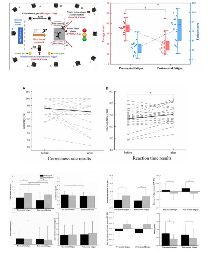 本研究阐明了脑力疲劳和决策对前交叉韧带损伤的影响。最终得出足球运动员在脑力疲劳后表现出更直立的着地姿势,而意外情况对躯干和膝关节的运动模式产生了负面影响,可能会增加前交叉韧带受伤的风险。脑力疲劳与决策因素的相互作用似乎并不会增加前交叉韧带损伤的风险。