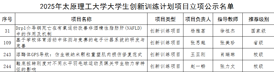 根据《山西省教育厅关于组织开展2025年大学生创新训练计划项目立项和结题验收工作的通知》(晋教高函〔2025〕9号)和《关于组织申报2025年太原理工大学大学生创新训练计划项目的通知》要求,学校组织开展了2025年大学生创新训练计划项目的立项申报工作。