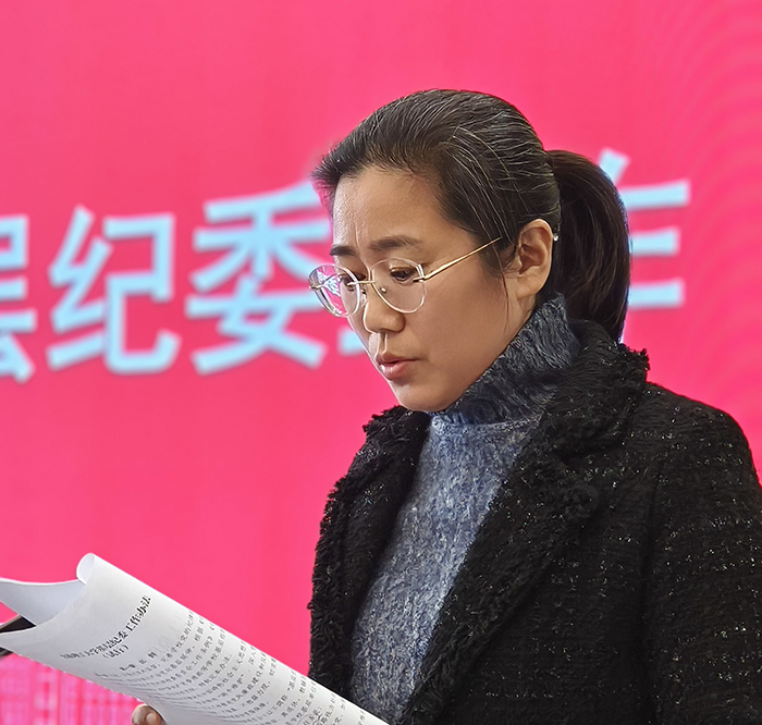 张莉副书记分两大板块进行工作汇报。首先,回顾了2025年学生工作亮点,从思想政治教育引领、学风建设提质增效、文体活动品牌打造、就业创业精准服务等方面总结成效。针对2026年学生工作,她提出要深化“三全育人”综合改革,聚焦学生成长成才全周期,精准对接学生需求,将竞技体育精神、健康中国理念融入育人全过程,着力培育德智体美劳全面发展的时代新人。随后,她宣读了校党[2026]4号文件《太原理工大学基层纪委工作办法》,结合学校全面从严治党工作要求,强调要健全基层监督体系、压实监督责任,以严的纪律、实的举措为学院三大国家战略落地、三大发展战略推进保驾护航。