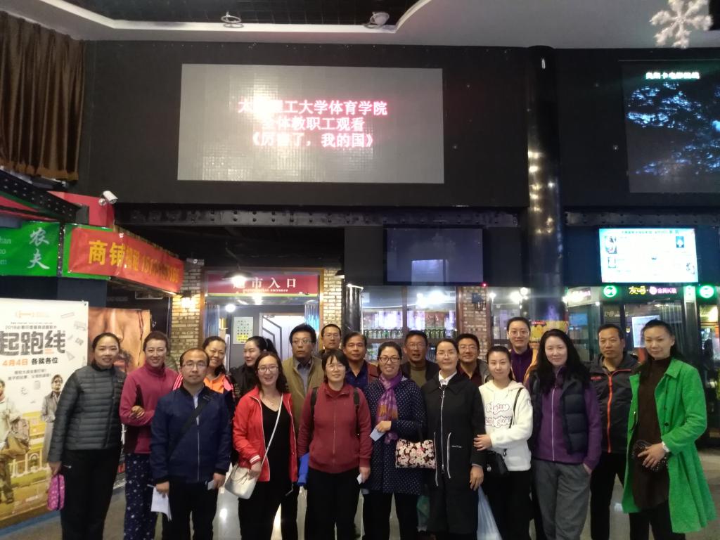 为深入学习贯彻党的十九大精神,不断增强广大教师的爱国热情,体育学院于4月13日晚上在奥斯卡国际影城(能源中心店),组织学院教职员工集中收看了纪录片《厉害了,我的国》。