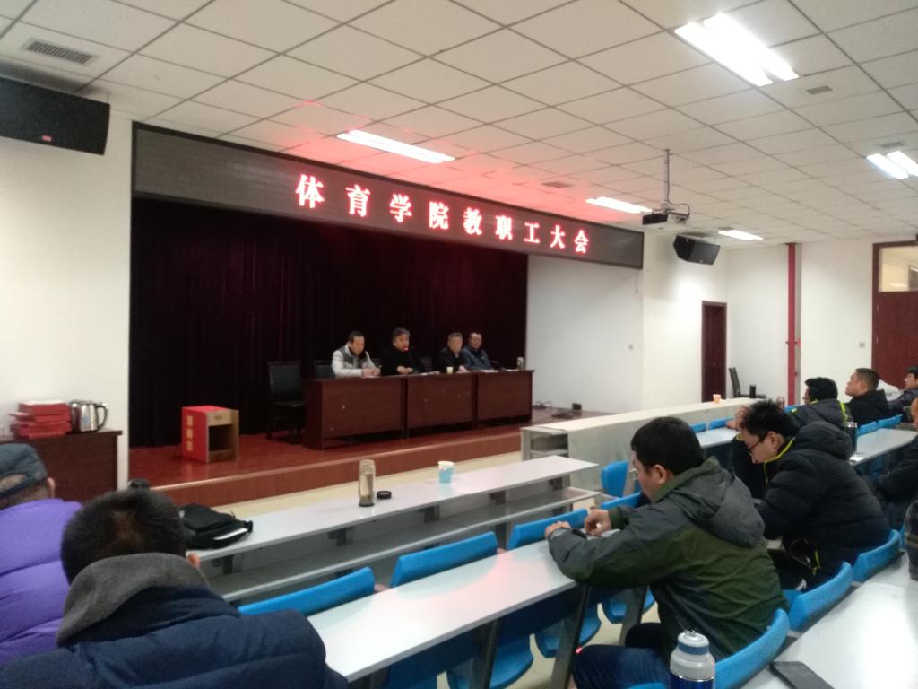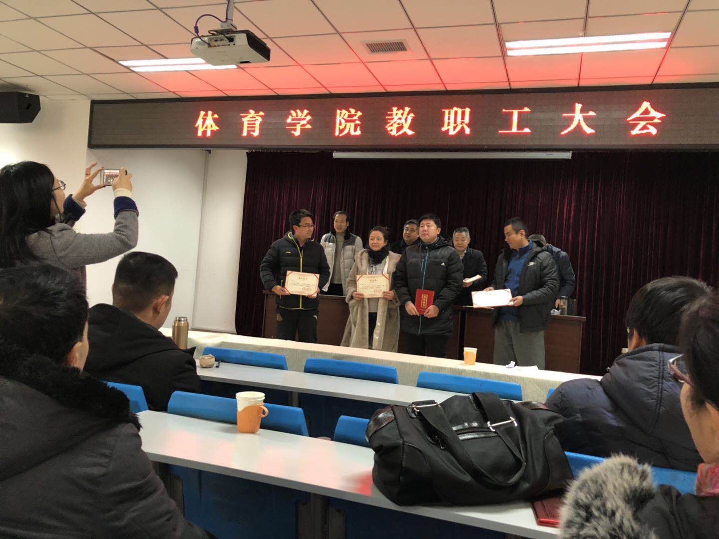 1月26日上午,体育学院在明向校区五层会议室召开2017年度总结表彰大会,对过去一年教学、科研、管理、服务岗位涌现出的优秀教职员工进行表彰和奖励。院党委书记汤巨渊,院长史冬博,副书记张忠璞,院党委委员、教科办主任宋志伟出席会议。全院教职员工参加了大会。学院党委副书记张忠璞主持会议。