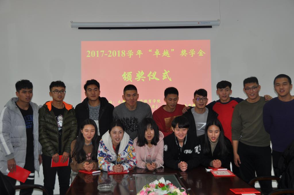 2018年1月23日,太原理工大学体育学院举行了“2017——2018学年‘卓越’奖学金”的颁奖仪式。