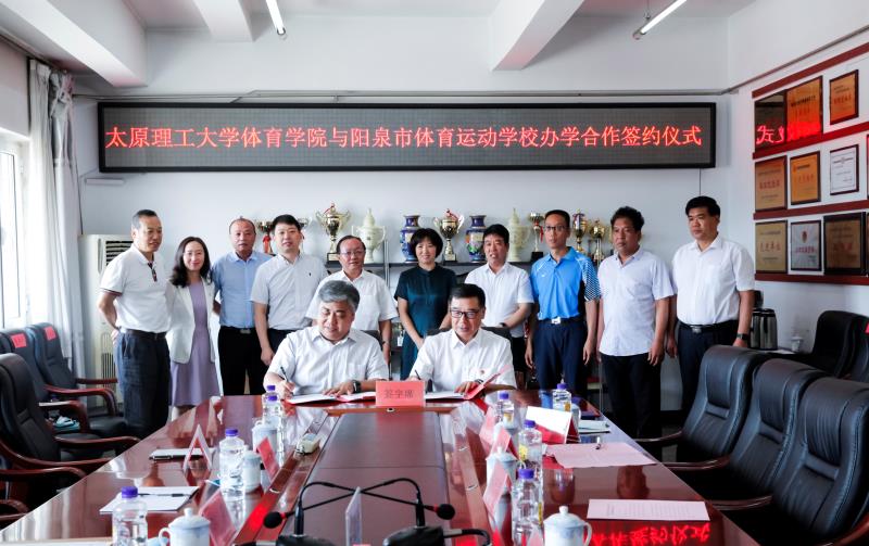 7月24日,太原理工大学体育学院——阳泉市体育运动学校签约挂牌仪式在阳泉体育馆举行。阳泉市政府副秘书长郑守忠,阳泉市体育局党组书记、局长姚文新、副局长王满田,阳泉市体育运动学校校长吴晋东,体育学院党委书记孙莉、院长史冬博等出席签约仪式,仪式由王满田主持。