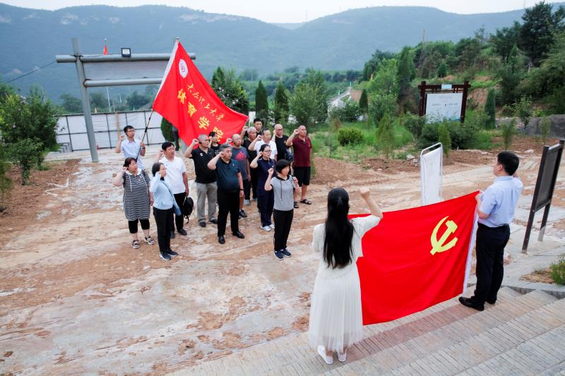 南庄村有着“晋察冀小延安”之称,在南庄老槐树下,大家认真聆听南庄村村支书讲述南庄人民抗战的历史,一幅幅抗日战争时期形势图、一张张革命先烈的照片、一件件珍贵的革命文物展现在眼前,向大家再现了根据地人民的艰苦岁月,英勇抗击日寇的壮丽画卷。随后在庄严肃穆、气势雄伟的“平定路北抗战纪念碑”碑前,全体观览人员怀着对党的热爱和忠诚,对革命前辈和革命先烈的崇拜和敬仰,向烈士敬献花圈、默哀1分钟、向烈士三鞠躬,并在党委书记孙莉同志的带领下重温了入党誓词。