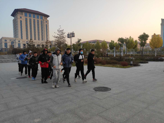 每周一至周五早上6:50,体育学院学生在宿舍楼下集合,以青春洋溢的早操开启自己崭新的一天。清晨凛冽的寒风,将每一个人的睡意打散。体院学生以班级为单位列队,迈着整齐的步伐,喊着洪亮的口号“体魄康健、人格完善、学识广博、理想远大”在校内跑步。围绕校内跑一圈后大家开始习练武术和做广播操。清脆的哨声和响亮的口号声久久回荡在清晨的太原理工大学,展现了我院学子积极向上,青春昂扬的风采。