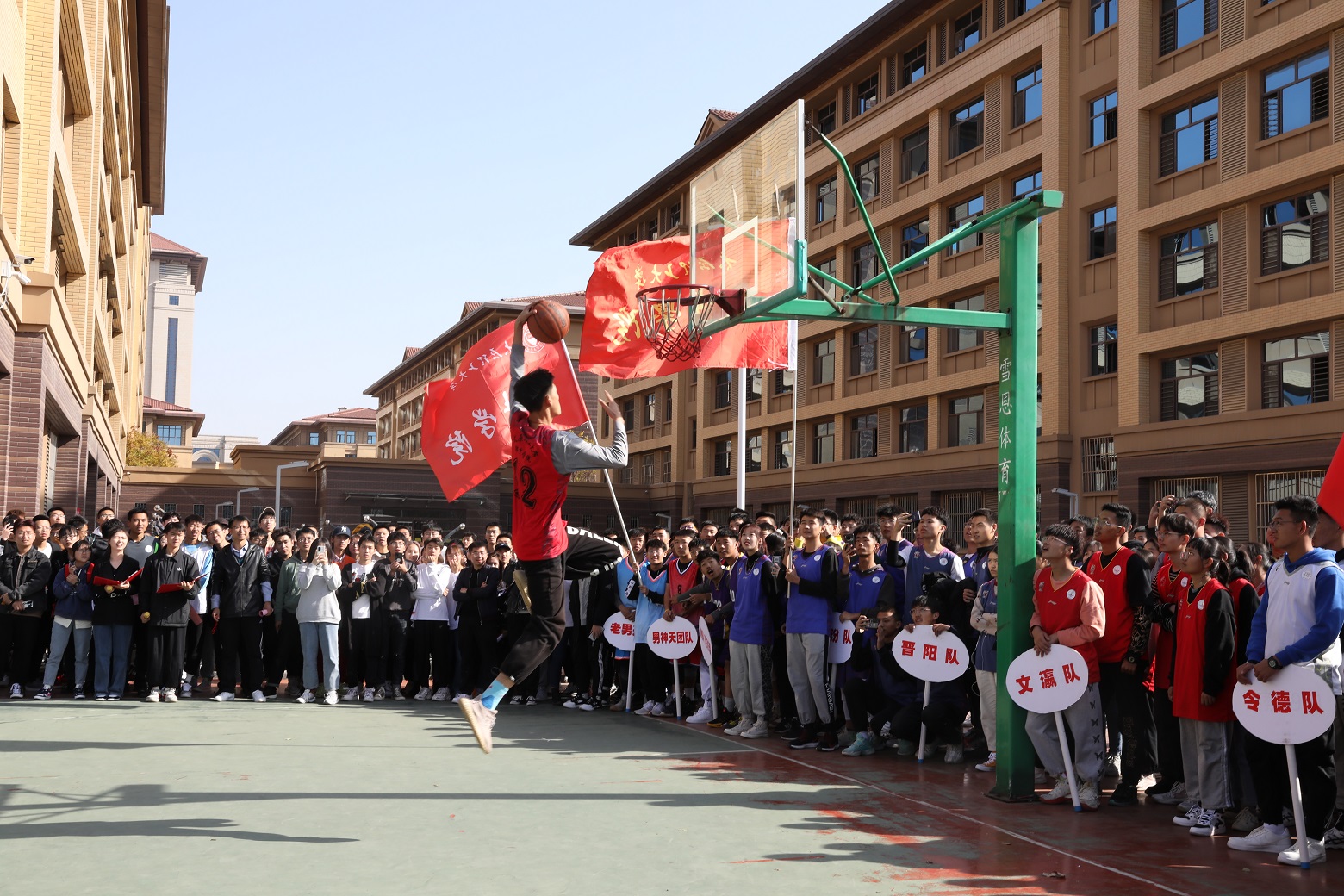 2020年11月6日由太原理工大学体育运动委员会主办,求实学院、软件学院、体育学院联合承办的2020年太原理工大学“友谊杯”新生篮球赛开幕式在明向校区西区篮球场举办,本次比赛是为深入贯彻习近平总书记关于“体育强国”建设的重要讲话精神,落实国务院办公厅《关于全面加强和改进新时代学校体育工作的意见》要求,执行教育部“教会、勤练、常赛”的学校体育工作标准,营造我校积极健康的校园体育文化氛围。开幕式由太原理工大学体育运动委员会副主任、体育学院院长史冬博教授主持。