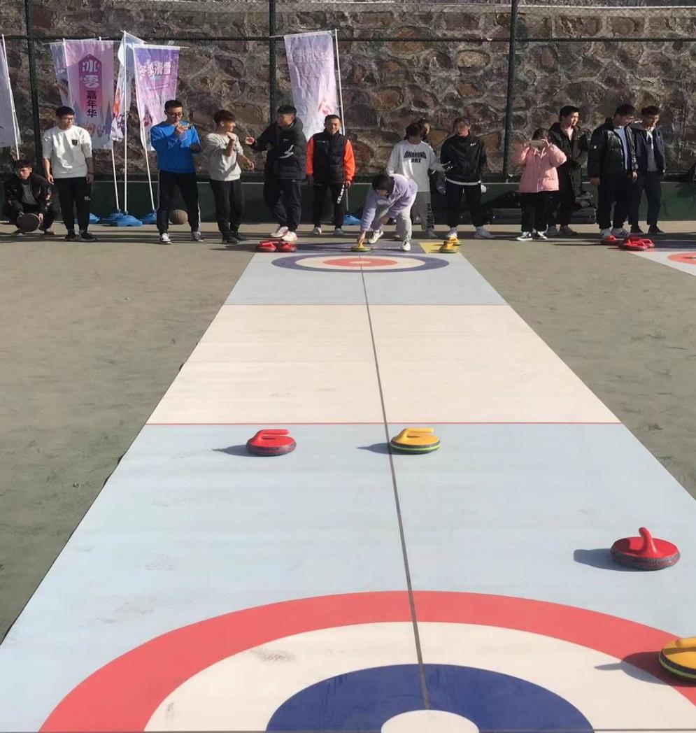 体育学院“双十工程”基地于2021年12月9日在明向校区手球场开展大学生冰壶体验活动。