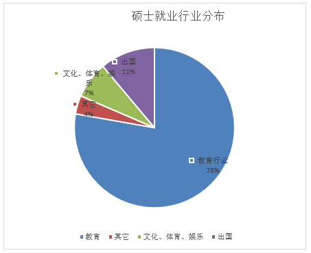 根据数据显示,我院硕士毕业生职业结构呈现多元化,主要为与本专业对口且能发挥特长的文化体育娱乐、高等教育单位、中等初等教育等行业。