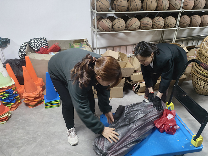 为了保证田径运动会能够顺利进行。在宋志伟、韩俊伟两位老师的带领下,场地器材组全体成员对田径场场地、看台、音像设备、器材保障均做了规划,对破损的塑胶跑道进行了修补,补充了比赛必需的器材;运动会进行过程中,主动对接各项目组,保证了运动会的顺利进行。运动会结束后,按类回收、存放比赛器材,为下一届田径运动会提前筹划、做好准备。