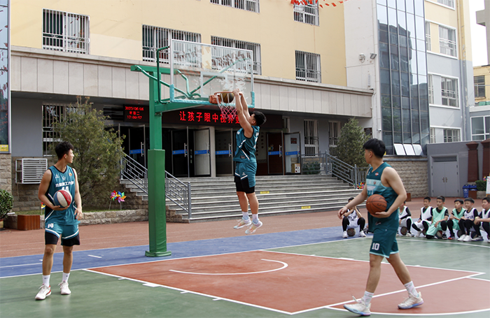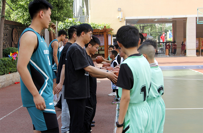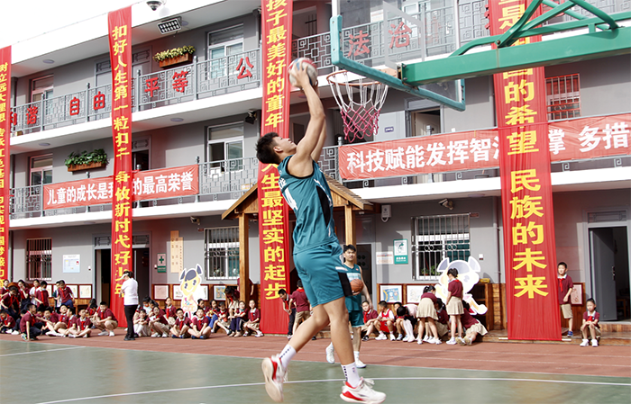 捐赠仪式过后,高水平篮球队队员进行了篮球表演及教学活动。活动开始前,他们认真分析了小学生们的年龄特点和篮球水平,制定了适合小学生们的篮球教学计划,并进行了反复的练习和调整。在活动现场,我院篮球队队员通过简单、易懂的语言,向小学生们传授了篮球基本技能和战术,让小学生们在轻松愉悦的氛围中学习篮球知识,提高篮球水平。
