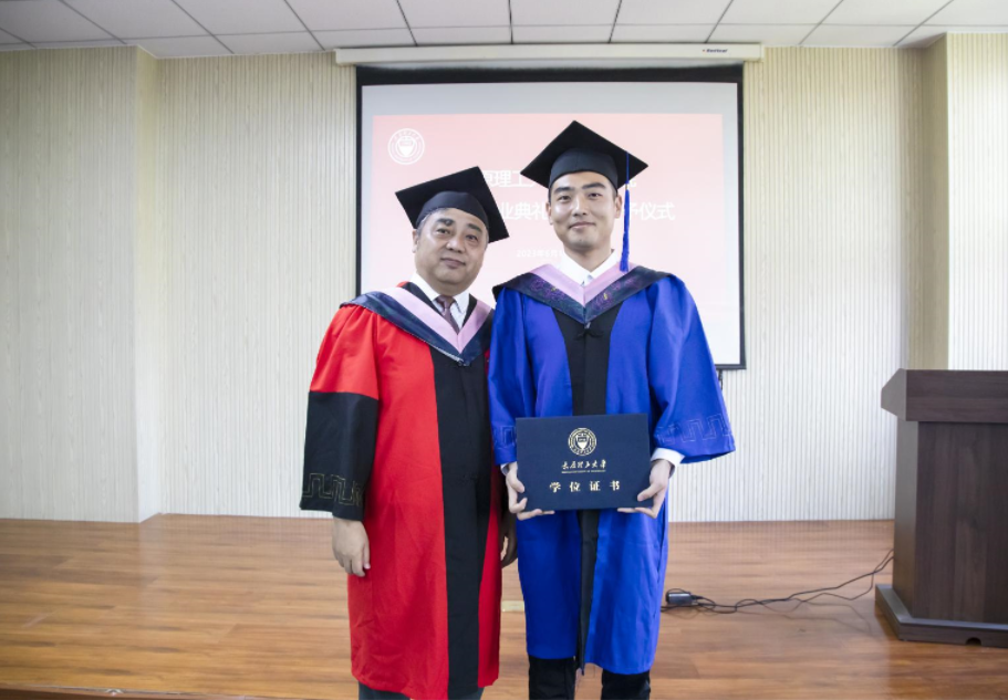 随后,毕业生代表逐一上台,院长史冬博教授为他们拨穗正冠,颁发学位证书,并合影留念。