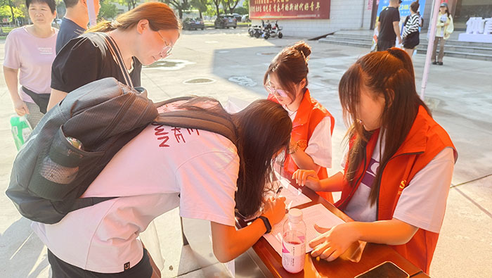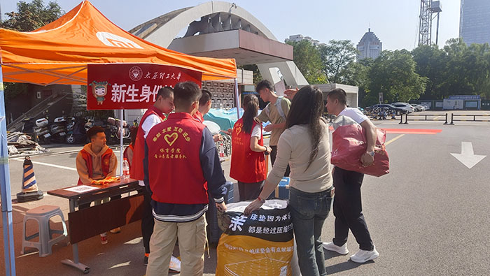 迎新工作井然有序进行,我院志愿者们耐心地为新生及其家长解答疑惑,同时将新生及其家长带领至体育馆签到处,为新生们指引宿舍楼方向。同时主动接过新生们手中的行李,讲解学校周围环境,让新同学能够更快熟悉校园。我院志愿者们以热情饱满的姿态在报到处与宿舍间不断往返,以确保迎新工作的顺利进行。