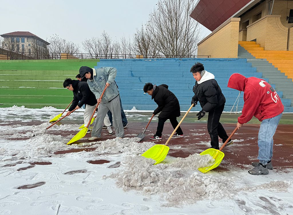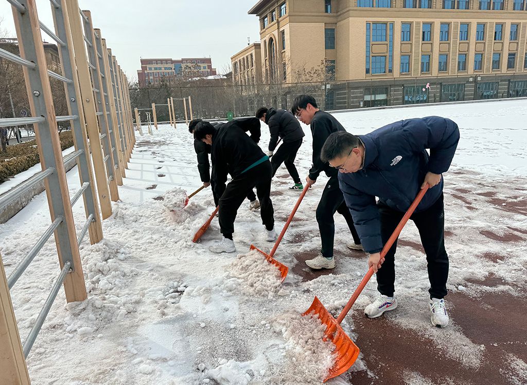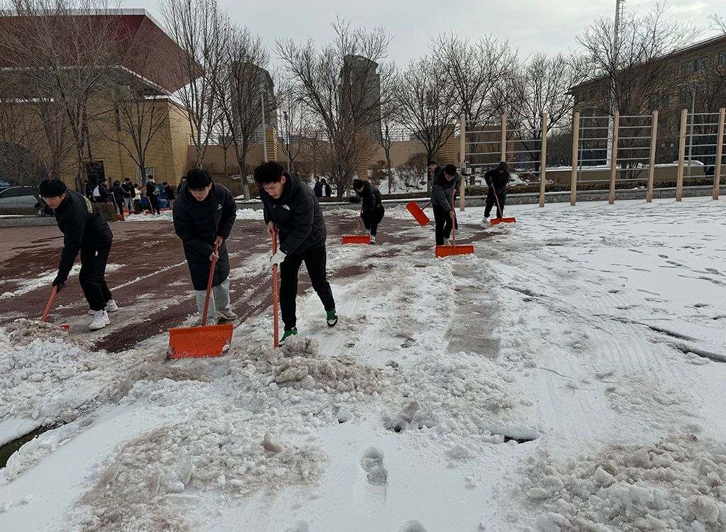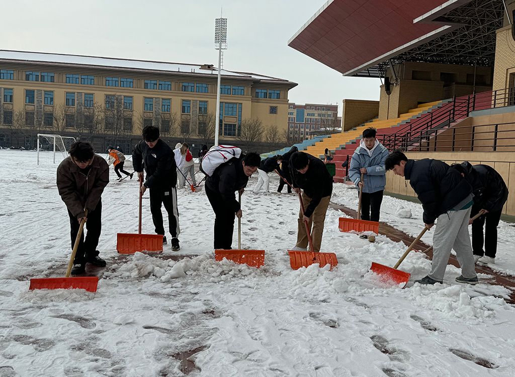 体育学院青年学子积极开展新学期校园体育场地冰雪扫除活动
