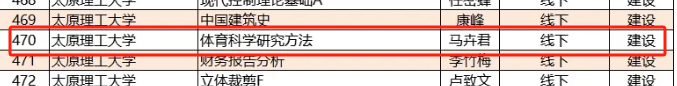 其中,我院副教授郭兆霞老师的线下课程《体育课程与教学论》认定为省级一流课程;博士马卉君老师的线下课程《体育科学研究方法》为省级一流培育课程。