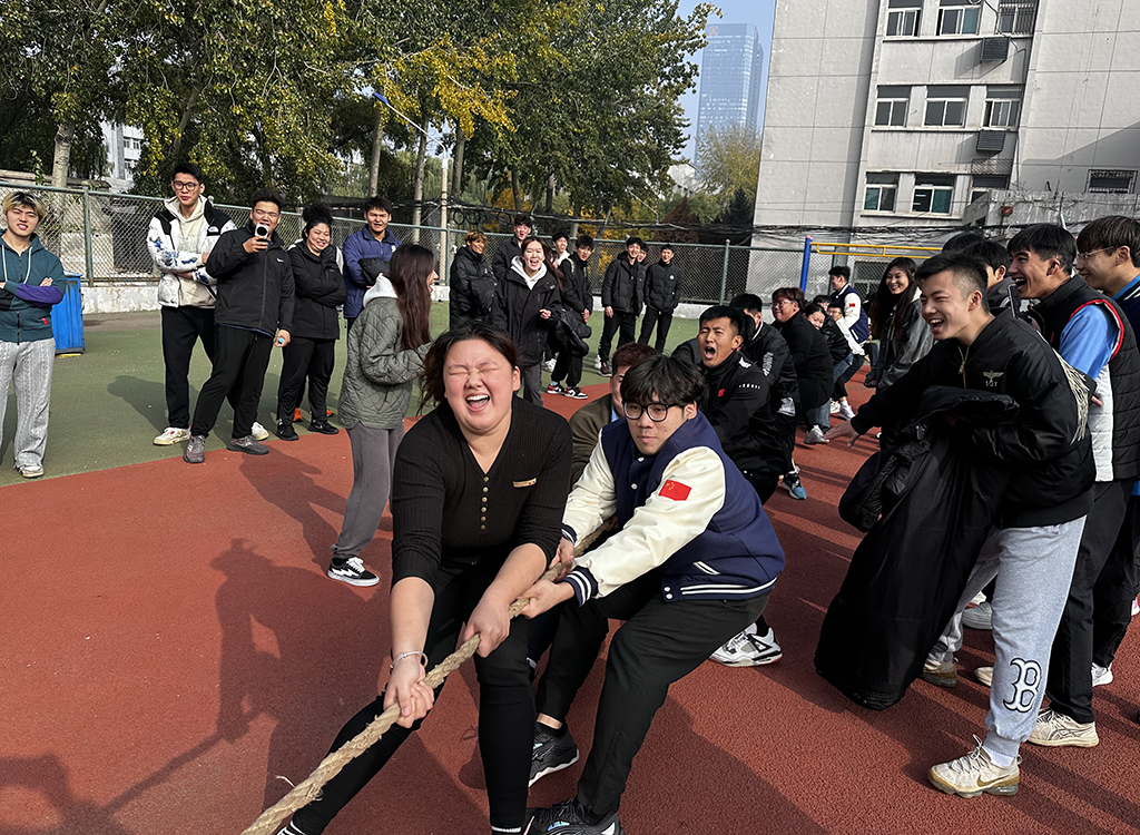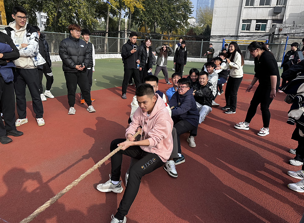 各个班级的代表人员组成16人的队伍(至少有1名女生),共计25支参赛队伍。随着一声哨响,拔河比赛正式拉开帷幕。参赛队员们个个斗志昂扬,紧握长绳,脚抵着脚,卯足了劲往后拉仿佛握住了整个世界的重量。在比赛过程中,各队队员齐心协力、奋勇拼搏,他们涨红了脸,咬紧牙关,不到最后一刻绝不放弃。场边的观众也被这热烈的气氛所感染,纷纷为自己支持的队伍呐喊助威,加油声、欢呼声此起彼伏,响彻整个赛场,斗志与激情燃尽了整个体育场。