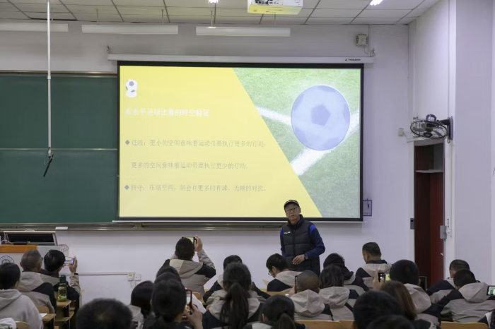 山西大学体育学院院长石岩教授以《体育赛事风险管理》为题进行了专题讲授。亚足联A级教练员、中国足协体能讲师、西安体育学院副教授杨浩讲授了《足球体适能训练》要点概述,并在学校足球场对各位学员进行了足球教学活动基本规范实训现场教学和示范讲解。