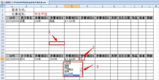 太原理工大学2019年田径运动会报名表操作步骤
