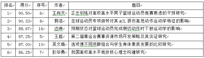 经太原理工大学体育学院学位分委员会专家对本次学术海报评审,前六名评审结果如下(附件:获奖海报展示):