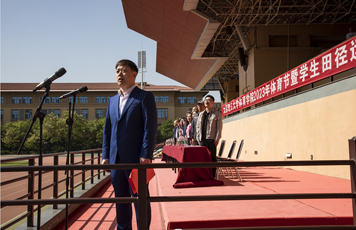 体育学院党委书记孙莉宣布:太原理工大学体育学院2023年体育节暨学生田径运动会开幕!