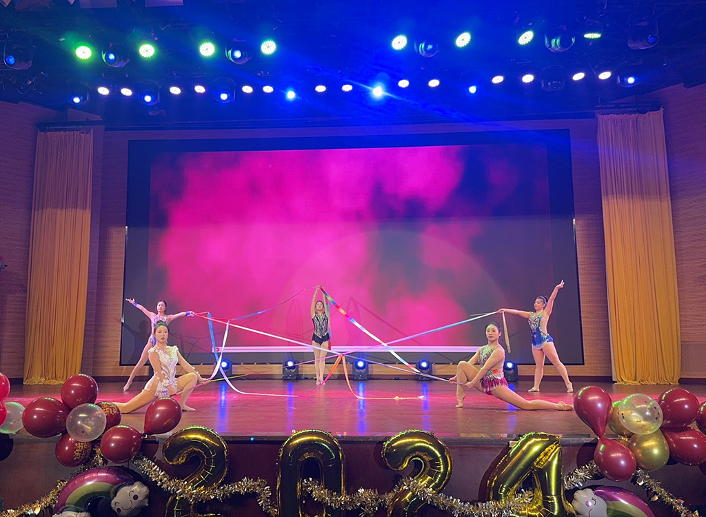 晚会现场灯光璀璨,乐声满堂,全场洋溢着和谐热烈的氛围。本次元旦晚会共分为“鼎故辞旧,青春激昂”、“体育健儿,盛会华章”、“奋楫笃行,扬帆起航”三个篇章,体育学院师生通过歌曲串烧、音乐剧、小品、影子剧、舞蹈、武术表演、艺术体操表演、健身健美表演等多种形式,为全院师生呈现了一场视觉与听觉的盛宴。