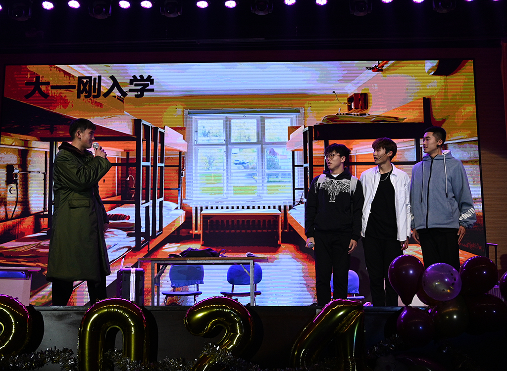 一场活力四溢的乐队表演《爱的飞行日记》瞬间点燃了现场气氛,体育学院辅导员队伍以及团学干部代表带来的《青苹果乐园》活力四射、激情洋溢;歌曲串烧《没那么简单》、《后山老头》、《淋雨一直走》、舞蹈《玩火》、街舞《霹雳无双》相继登场,赢得阵阵掌声;音乐剧《最美的青春》、影子剧《遇见》致我们懵懂的青春美好;小品《非诚不找》全程欢声笑语不断、《同学你好》叙述了大学四年的美好时光、引发观众感动落泪;《石榴花开》《晋韵·宋塑》为大家呈现了极富韵味的舞蹈盛宴;《少年凌云志》、《绽放》、《健与美》极具专业特色、展现体育魅力;《活着》、《抗日奇侠》引人深思、回味无穷,抽奖环节激动人心,观众们积极参与互动,热烈的欢呼声、鼓掌声将现场气氛推向高潮。最后,晚会在全体演职人员共同演绎《明天会更好》的热烈氛围中落下帷幕。