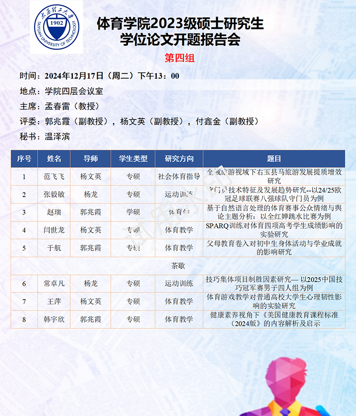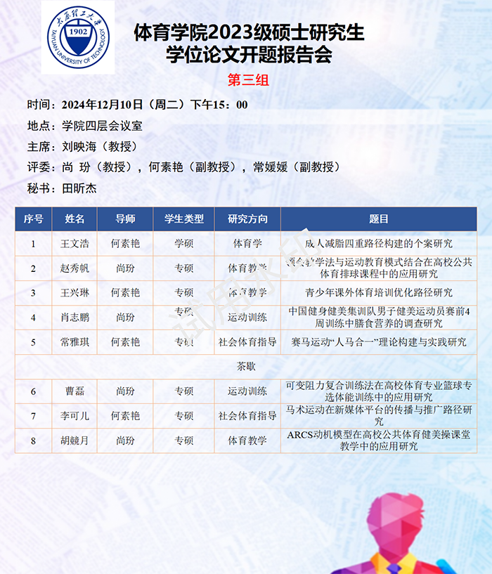 体育与健康工程学院2023级研究生学位论文开题答辩工作圆满举行