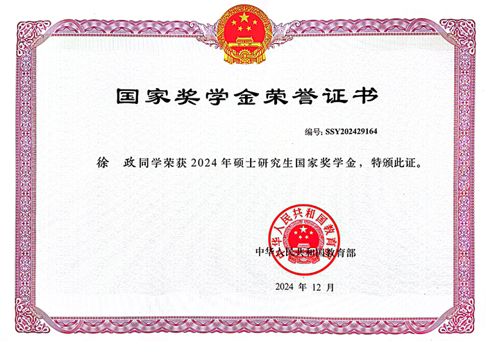 学院向徐政同学表示热烈祝贺!希望更多同学以徐政同学为榜样,笃行不怠,锐意进取,在追求卓越的科研之路上不断前行,再创辉煌!