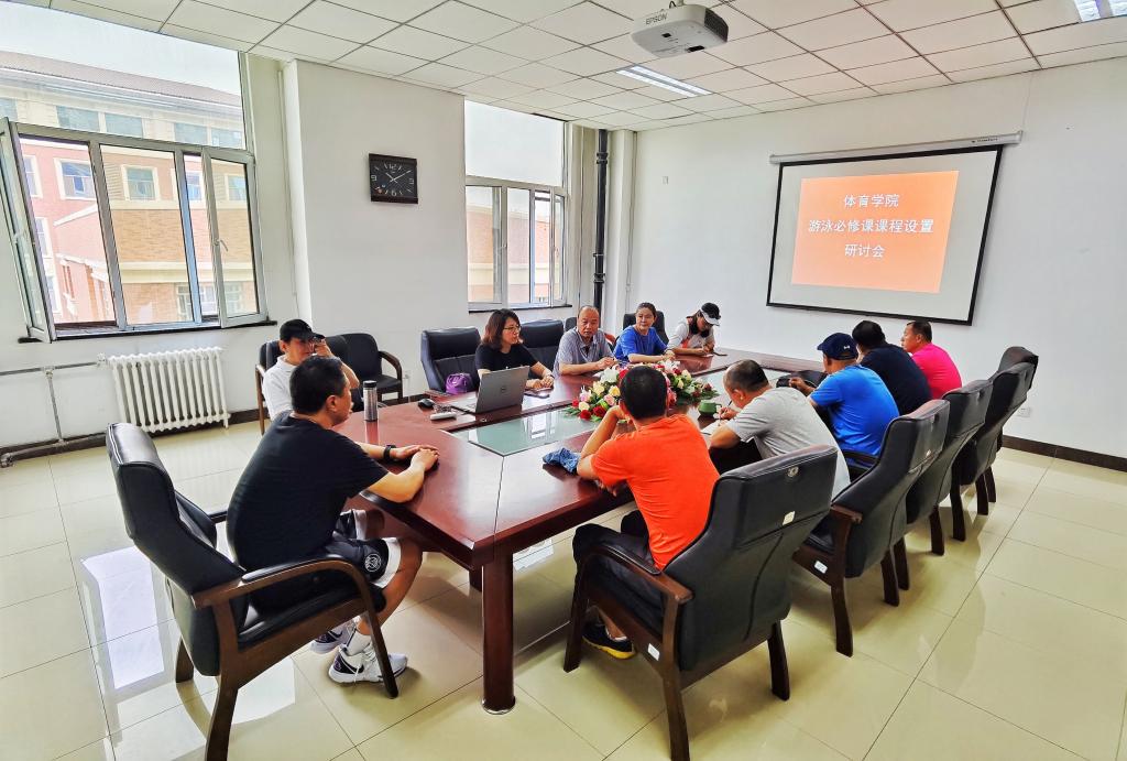 6月8日上午,体育学院在311会议室召开游泳必修课课程设置研讨会。学院督导组成员、系部负责人、游泳专业相关教师、教科办负责人参加会议。会议由田忠新副院长主持。