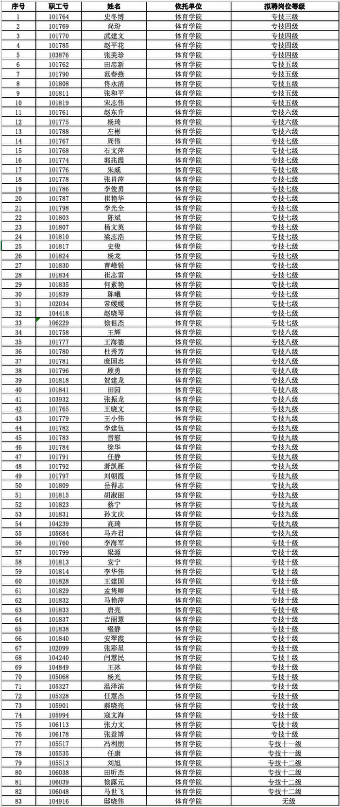 依据学校有关文件,结合《体育学院专业技术教师四级以下岗位职级聘用办法》文件要求,学院学术委员会对申报提交的材料进行了认定,经学院岗位聘用工作组审核,现将学院专业技术教师岗位聘用等级进行公示,公示期9月20日至9月22日。