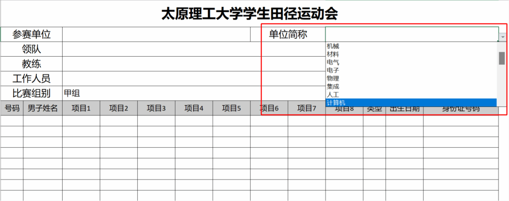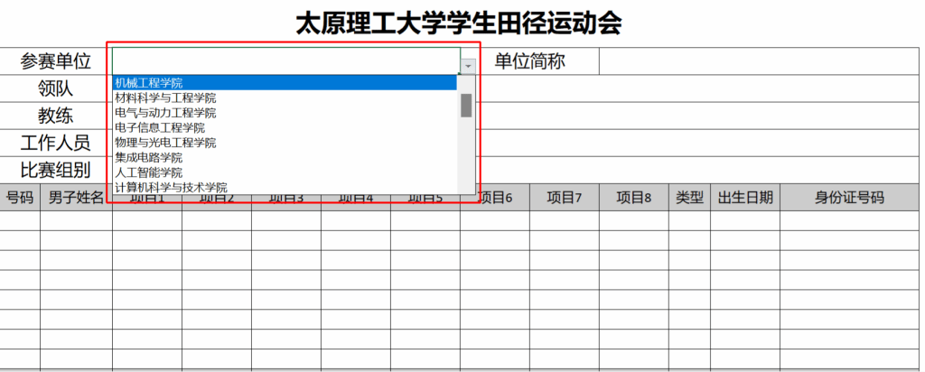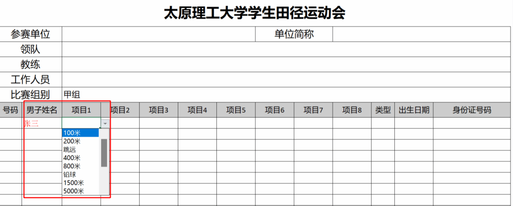 太原理工大学学生田径运动会报名表操作步骤