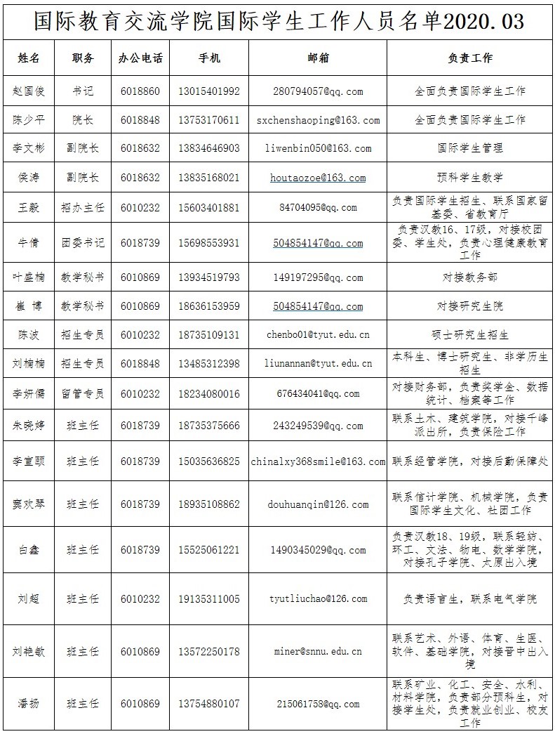 国际教育交流学院国际学生工作人员机构名单