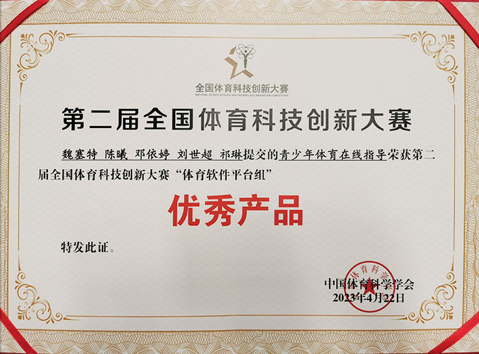 陈曦副教授团队研究成果在全国体育科技创新大赛中荣获“优秀产品”奖